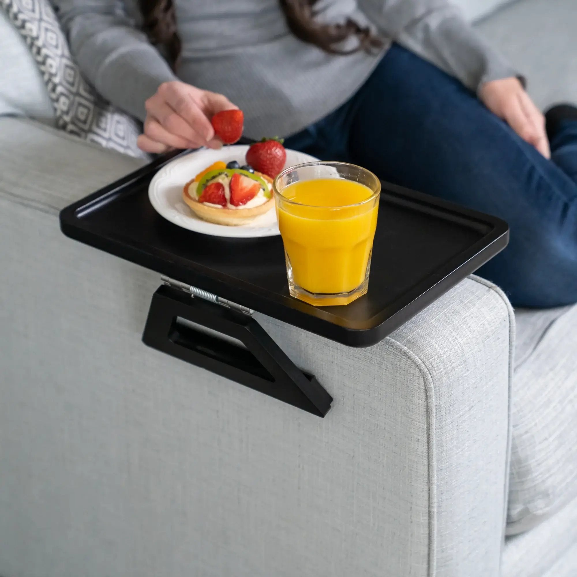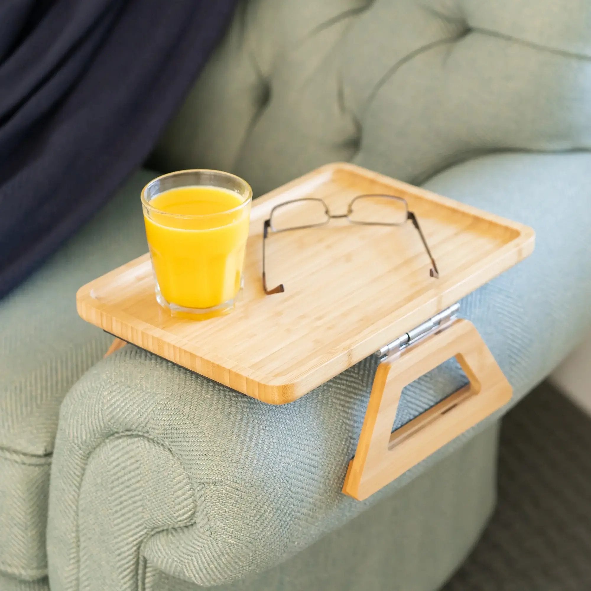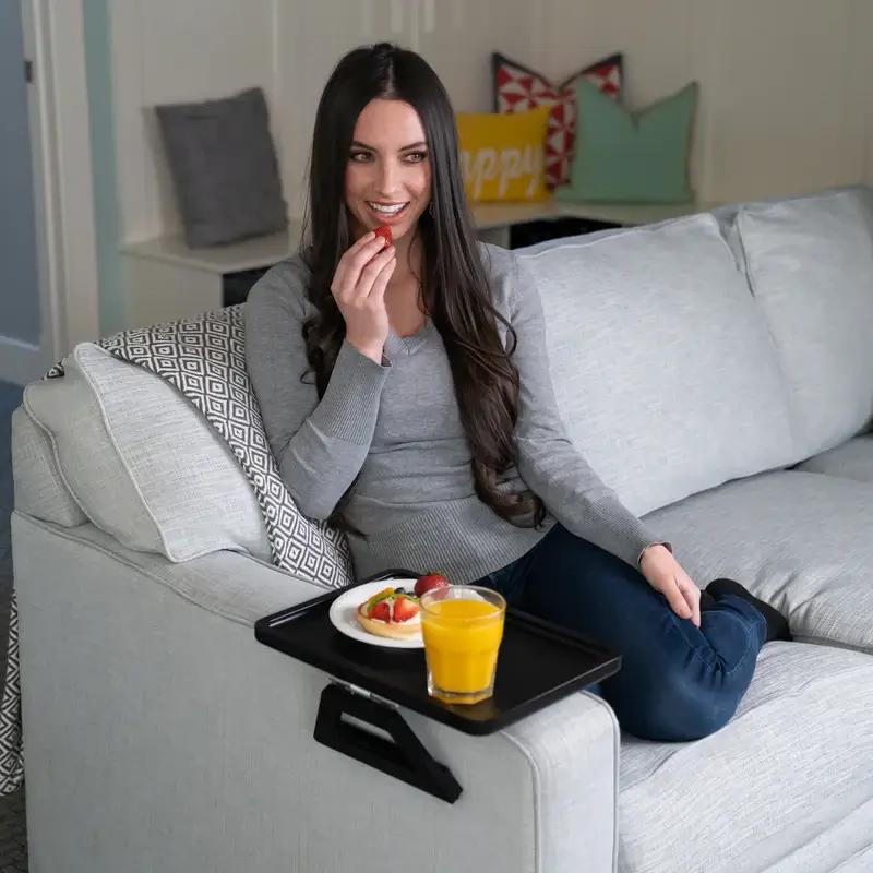 We know it’s hard figuring out if this small foldable table is small enough, or big enough for your sofa arm. So you get to try this couch tray and see because if it doesn’t save space or keep things handy and secure on any sized chair!, you can return it within 30-Days for a refund.